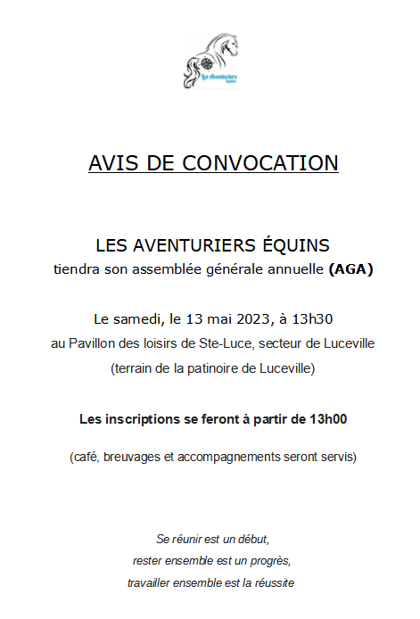 2023-05-132023-05-21lesaventuriersequinsLaisser un commentaire sur Avis de convocation – Assemblée générale annuelle 2023 Avis de convocation – Assemblée générale annuelle 2023 Partager : Cliquer pour partager sur X(ouvre dans une nouvelle fenêtre) X Cliquez pour partager sur Facebook(ouvre dans une nouvelle fenêtre) Facebook J’aime chargement… Similaire