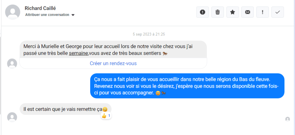 Cet été, nous avons eu de la belle visite dans nos sentiers; des campeurs-randonneurs de plusieurs régions du Québec, d’aussi loin que les Laurentides, Drummondville et la Gaspésie. L’association Les Aventuriers Équins commence à être connue et s’avère une destination appréciée des touristes équestres.